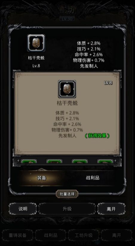 先发制人的刷法就在于,玩家要尽可能地将装备升级,同时储备足够的药品,以应对不断挑战的怪物。