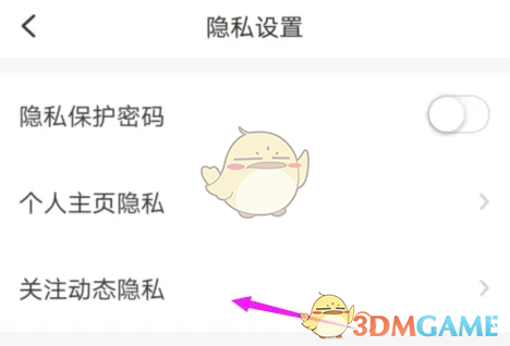 4、接着点击【关注动态隐私】。