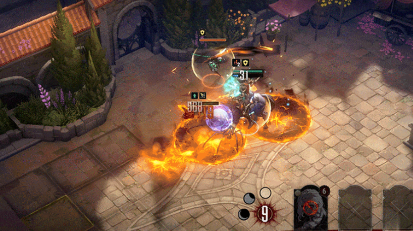 对沿途碰触到的敌人造成伤害,并对目标及其周围圆形范围内敌人也造成伤害同时施加上眩晕效果,随后为自身添加上护盾,自身的所有护盾被打破的时候,洁希德自身能获取到不可选中,冲锋结束后会开启持续施法冲锋最远的敌人,对沿途和目标形成输出,对扇形范围内的敌人展开一次攻击,奥义当中的每一次冲锋都会在路径上形成持续造成范围伤害的“炽灼焰心”。