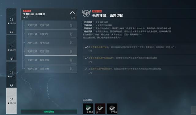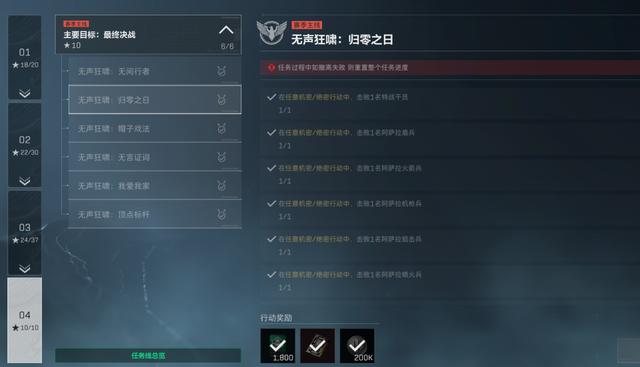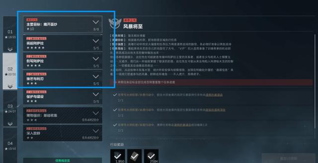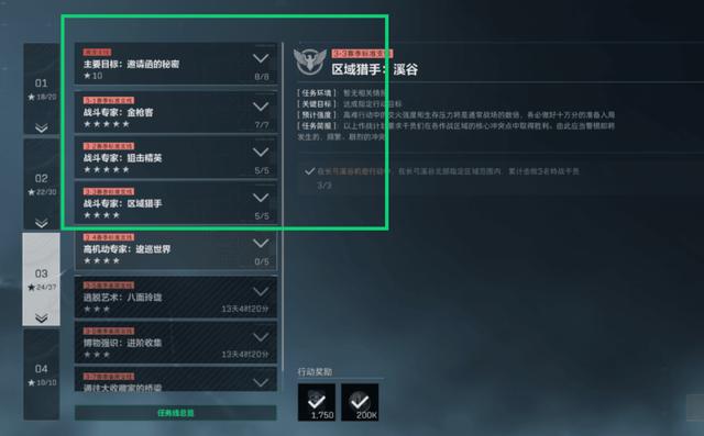 三阶段直接选前四个支线任务就行,不用纠结其他选项。区域猎手任务看起来麻烦,其实核心就是在指定范围内杀干员,不用追求高击杀数,按区域清场就行。像 “金枪客”“狙击精英” 这类任务,基本没难度,去长弓地图 “卖命” 刷几局就过,不用花太多心思在上面。