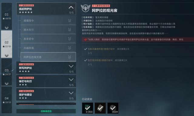 其中 “祸起阿萨拉 — 阿萨拉观光客” 是重点,进图选深蓝战局就对了。装备不用太好,带破损 MASK 金自闭头和全新 AI 武士防弹背心就行,亲测这个搭配在深蓝战局里基本能随便撤离,不用担心里程碑断档。
