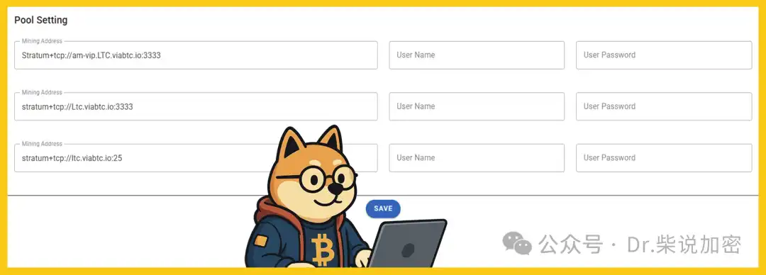 进入矿机的网页端控制面板,在管理介面设置网址,连接埠号,矿工名,密码等基本资讯。