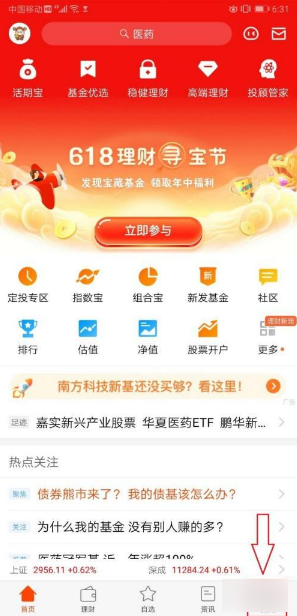 1、打开天天基金首页,点击“我的”