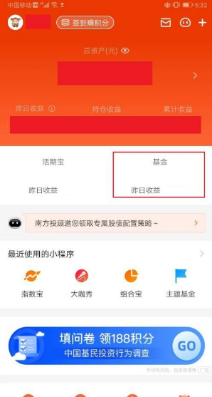 2、点击“基金”栏目,进入已购基金列表