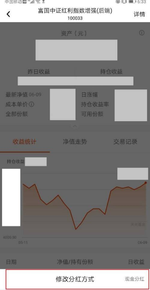 5、在弹出的对话框中,选择“修改分红方式”
