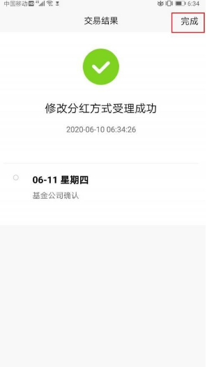 7、点击”完成“按钮,等待基金公司确认即可