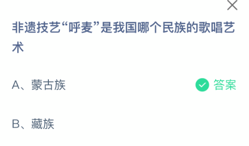 以上就是非遗技艺“呼麦”是我国哪个民族的歌唱艺术,支付宝蚂蚁庄园2025年10月13日答案最新,更多精彩内容,请点击关注0405手游网更新!
