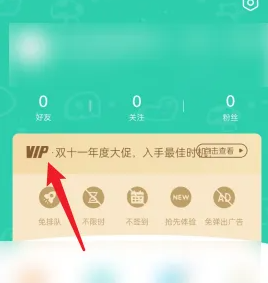 2、在我的图标页面,找到左上方的VIP标识,点击进入。