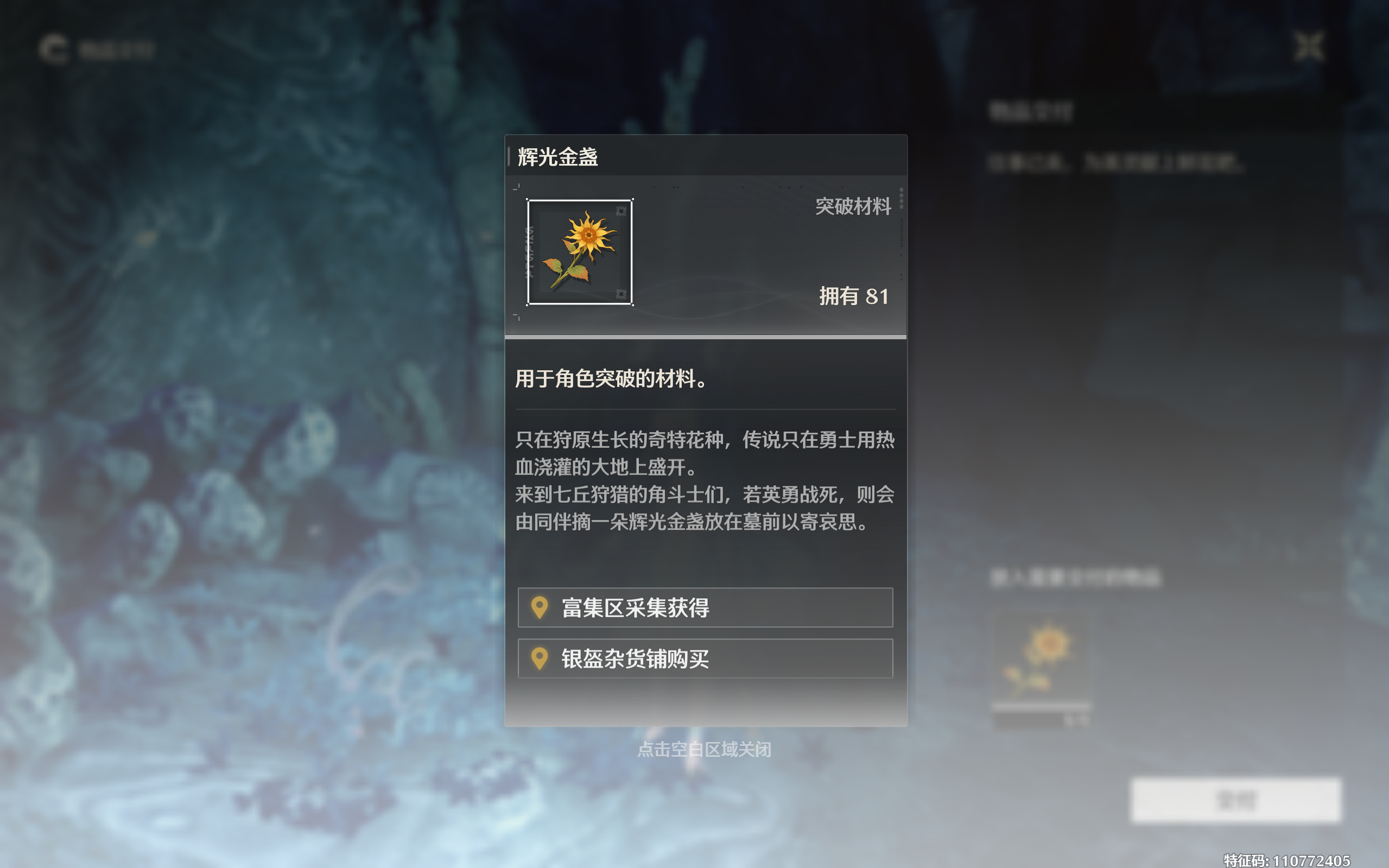 需要道具辉光金盏*1