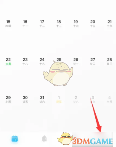 1、进入日历清单app首页,点击底部箭头所指的图标。