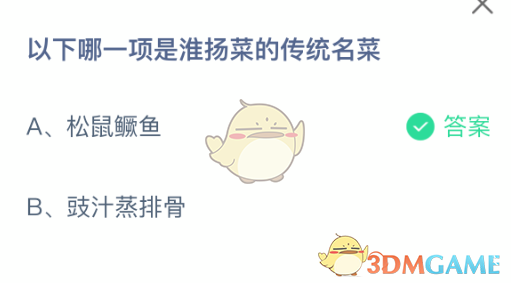 以下哪一项是淮扬菜的传统名菜?支付宝小鸡课堂开课啦!每天花一分钟答题赚饲料,喂喂小鸡就能贡献爱心啦!轻松又意义十足!2025年10月22日蚂蚁庄园的小鸡课堂题目正确答案是【松鼠鳜鱼】,松鼠鳜鱼是淮扬菜的传统名菜。该菜起源于乾隆年间,是淮扬菜中刀工与火候结合的典范,现为国宴淮扬菜代表之一。