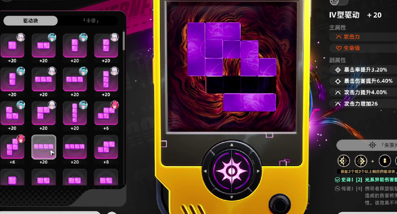 输出型弧盘包含有无首铁驭、日蚀,作为主要C位需要搭配的武器,它们包含有很强的攻击倍率加成和暴击率加成。