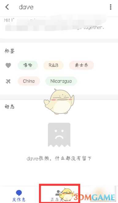 6、显示【正在关注】就成功关注对方了。