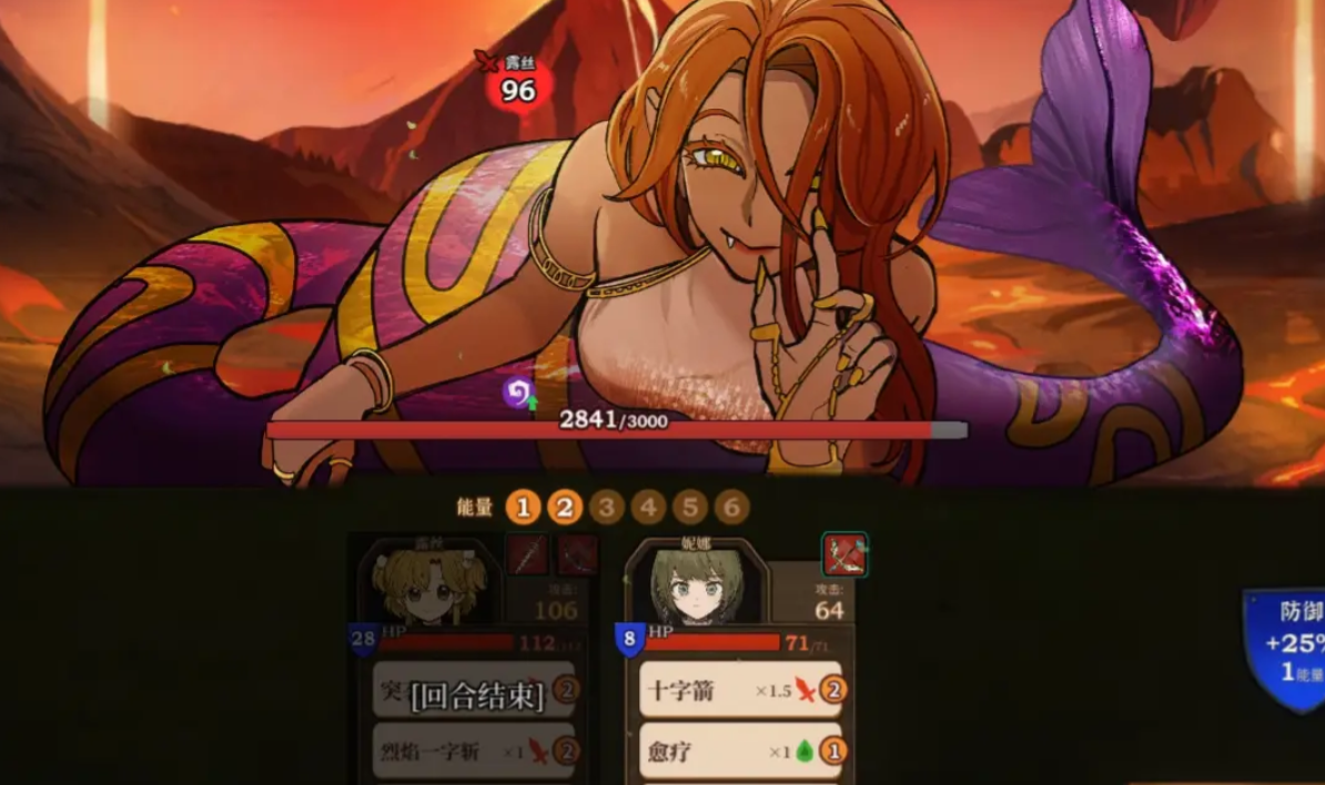 深海人鱼的第二个技能是“123木头人”,该技能可以促使队列当中的成员强制停手,在怪物的头部出现停止标记时,则需要使所有的成员在该回合内不要行动,否则会直接进入到僵持状态,使得无法积累怒气数值。