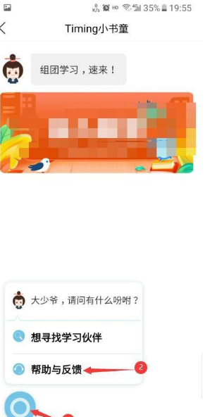 3、在Timing小书童页面,点击下方图标并进入【帮助与反馈】。