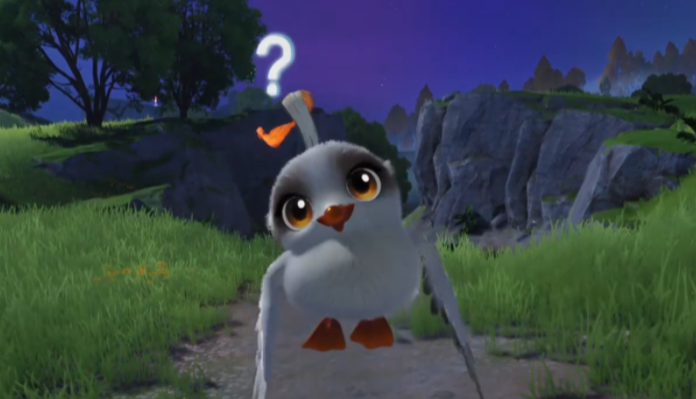 然后他最后一个技能是群体技能,也就是起哄的效果,此时用这个技能,它可以带来一个高频输出的口哨声音,然后这个声音会吸引周边的宠物对它靠近,所以相当于是一个聚怪的效果。当然,如果在一些解谜的时候也是需要声音的,那么就可以用到它的这个口哨声,遇到一些对敌生物的话,也可以用它的这个技能来吸引这些宠物出现,所以在定位上面它也是比较有全面效果的,既可以用来探索角色,也可以用来赶路,也有一些走路的宠物去不了的地方,它也可以进行飞行,所以用处比较多。