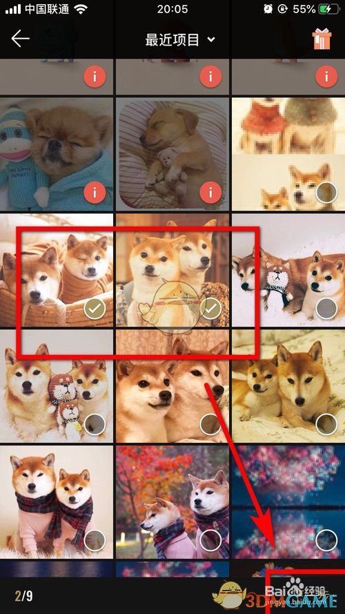 4、没有带“!”的是可以上传的,比如选择下图中的2张图片,然后点击“下一步”。