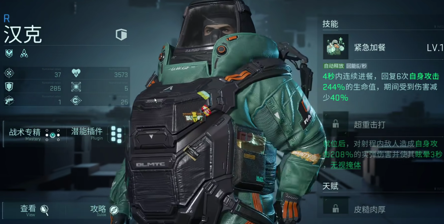 汉克在游戏内的被动技能是回血,同时附带有单体的输出爆发能力,无论是在副本战斗,还是在试炼爬塔关卡之中,都是最佳的一个前排坦克。