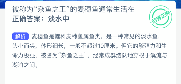 以上就是被称为“杂鱼之王”的麦穗鱼通常生活在?神奇海洋今天答案最新2025年10月25日分享,更多相关攻略内容,请点击关注0405手游网更新!