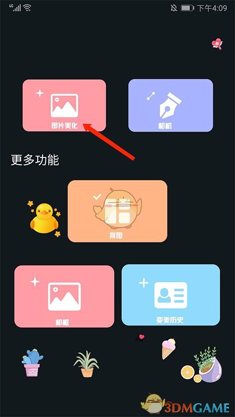1、打开app,选择【图片美化】功能,