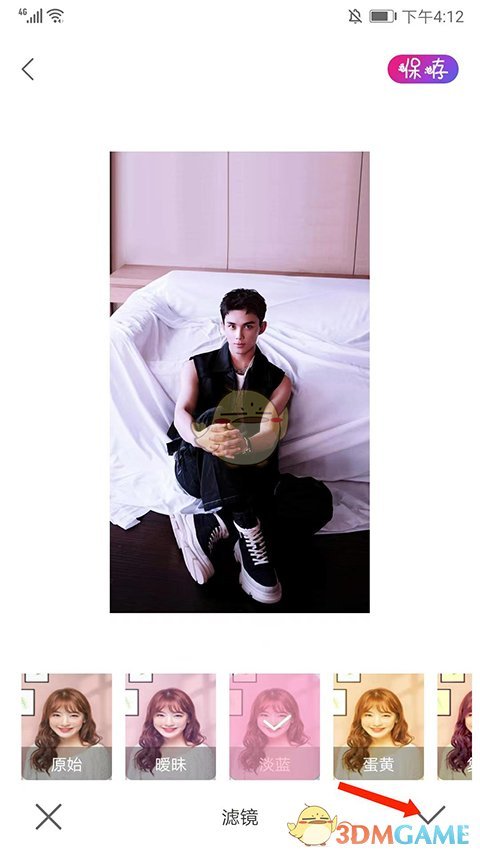 4、如图所示,照片已呈现蓝色滤镜效果。点击右下角【打勾】图标,保存效果。