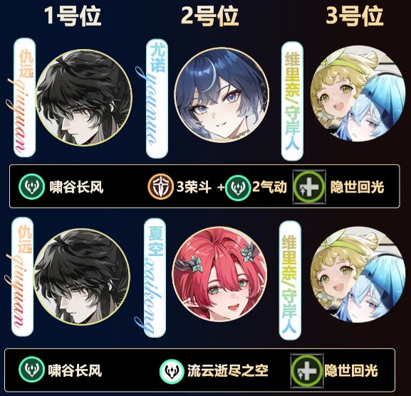 鸣潮仇远怎么配队,这里给的第一配队为毕业仇远阵容之一 第二配队为弗坎仇配队,伤害也不错,息界套二风和轻云套,差距不大,刷了那个带那个。 仇远主C玩法偏向大世界娱乐向,链数高伤害也不错。
