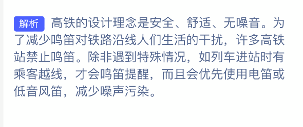 1、题目:为什么很少听到高铁列车的鸣笛声