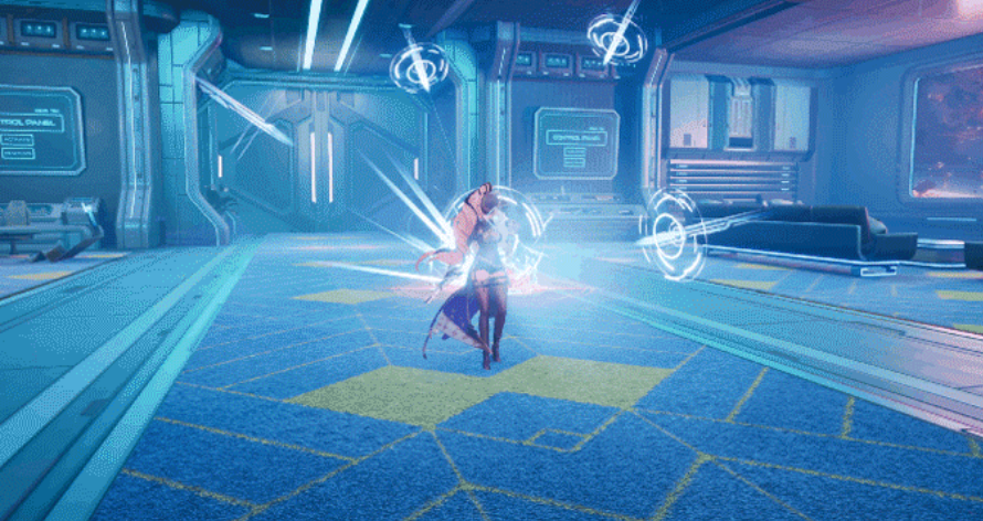 薇洛妮卡的基础普攻在地面状态下点击可连续发动五次攻击。若在第1、2段普攻时进行长按操作,则会激活“枪焰”效果,召唤来自天基系统的打击力量,对周围敌人造成范围伤害;而在第3、4段普攻中长按则触发“雷动”机制,展开防护护盾并在释放完成后引发爆炸,进一步扩大输出范围。当处于空中状态时,点击普攻将消耗耐力值,并使首次攻击附带击退控制效果。