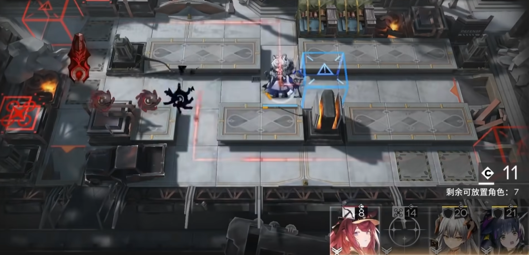 二技能“御敌的锋锐”侧重于范围控制与输出压制。发动时对前方多个敌人造成相当于其攻击力一定比例的伤害,并使其陷入寒冷状态,同时破除隐匿效果。此外,距离“风雪之眼”最近的待部署干员部署费用也会下调。当左侧最近位置有干员部署时,会以该干员的攻击力触发一次本技能的范围性附加效果,实现联动打击。