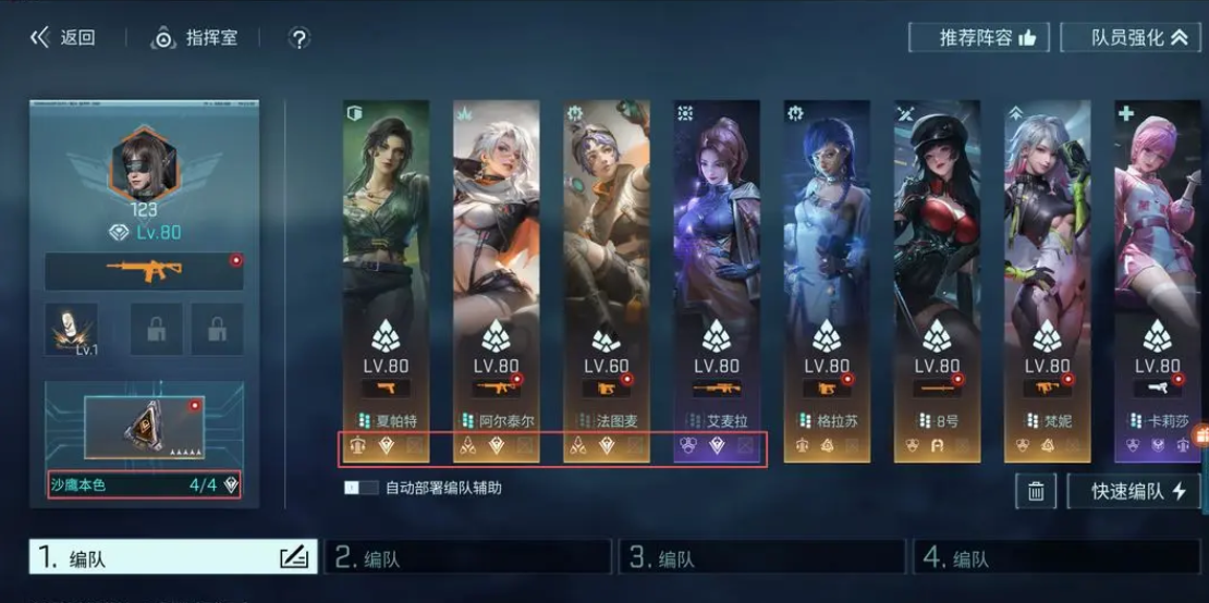 模组的激活条件是理解属性加成Buff的关键,每个编队只能配置一枚模组,而且必须保证队伍中拥有足够数量的与模组标签匹配的角色。例如一枚沙鹰模组,队伍中至少要有四名带有沙鹰标签的角色,少一人都无法激活,玩家在组建队伍时可以点击模组图标查看所需人数,优先将符合条件的角色加入队伍,确保基础Buff顺利生效。对于新手来说,首选沙鹰模组是最佳策略,前期送的沙鹰角色数量较多,激活门槛低,可以快速体验Buff效果。