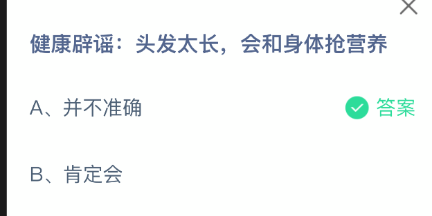 以上就是健康辟谣:头发太长,会和身体抢营养,支付宝蚂蚁庄园2025年11月6日答案最新,更多精彩内容,请点击关注0405手游网更新!