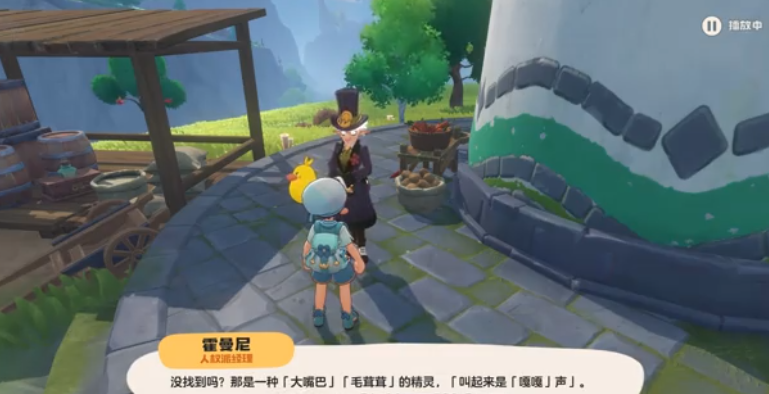 这里就需要告诉大家一个重点,霍曼尼要的精灵全部都在npc的对话中。在对话的过程中就会告诉你需要一只大嘴包,浑身毛茸茸,而且还会嘎嘎叫的精灵。一开始找了半天也没有找到,后来发现根本就不需要跑远,就在霍曼尼边上不远处,那就是鸭吉吉。不过这里还需要注意,因为它本身就有两种形态,千万不要抓错了,一个是胖乎乎的,一个是瘦干干的。霍曼尼千叮咛万嘱咐,要抓的就是胖乎乎的,而并不是瘦的那个。