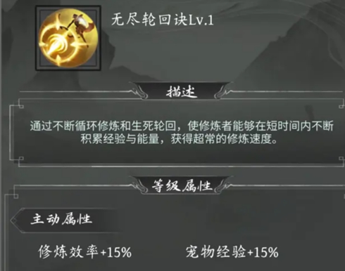 心法:一些心法书是增加修炼效率的,比如“无尽轮回诀”