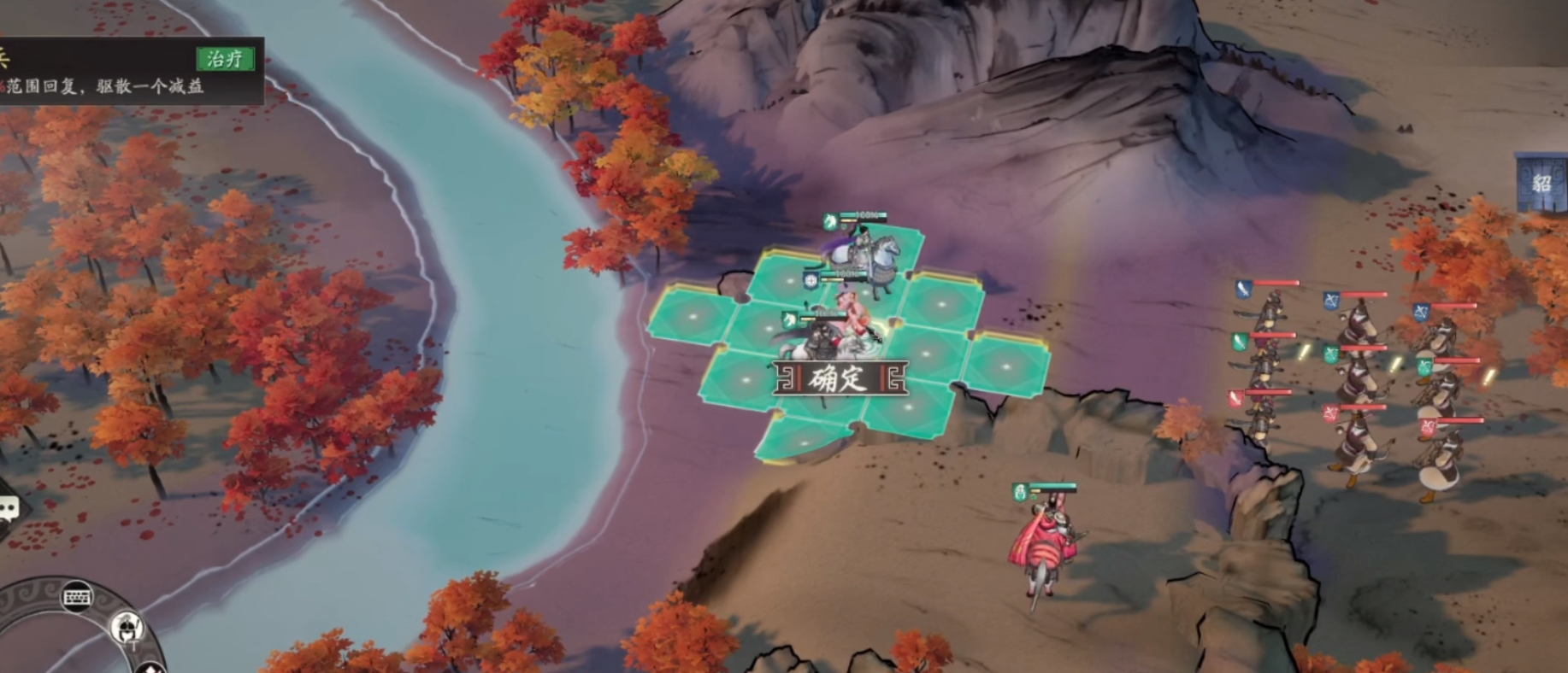 4、技能万箭齐发:以糜芳为核心,对敌人方阵的3格为中心的3×3内的范围造成巨大的伤害值,但是有2秒的前摇。