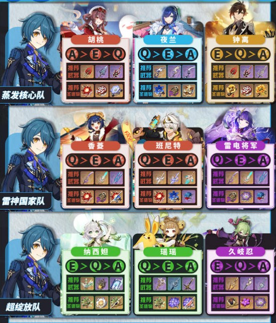 蒸发核心队:行秋+胡桃+夜兰+钟离