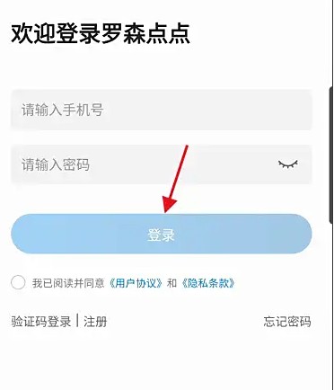 1、进入罗森点点输入相关信息点击”登录“选项 。