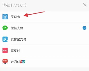 5、回到支付页面查看是否是罗森卡进行支付即可 。
