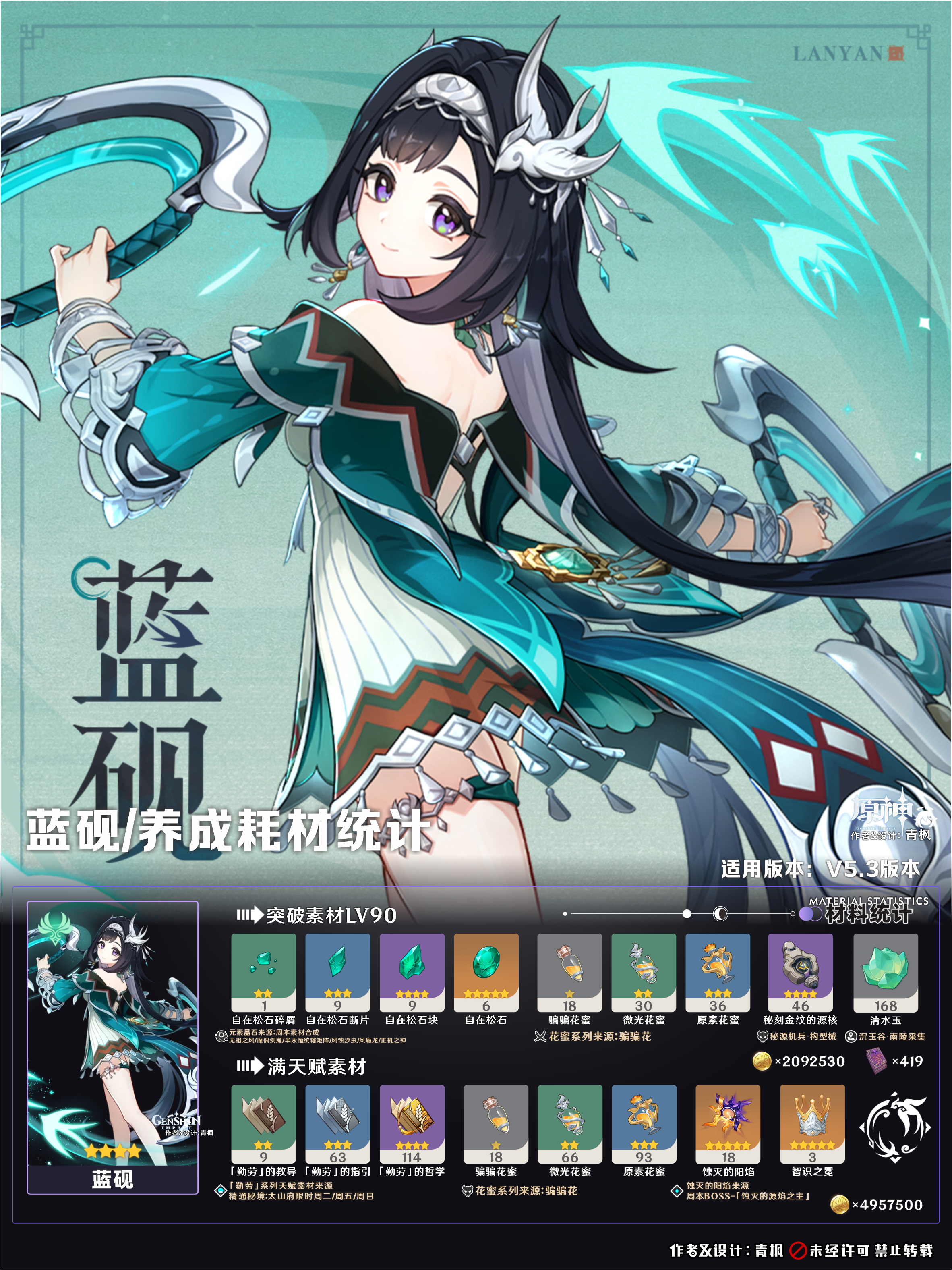 查看《原神》蓝砚角色培养攻略