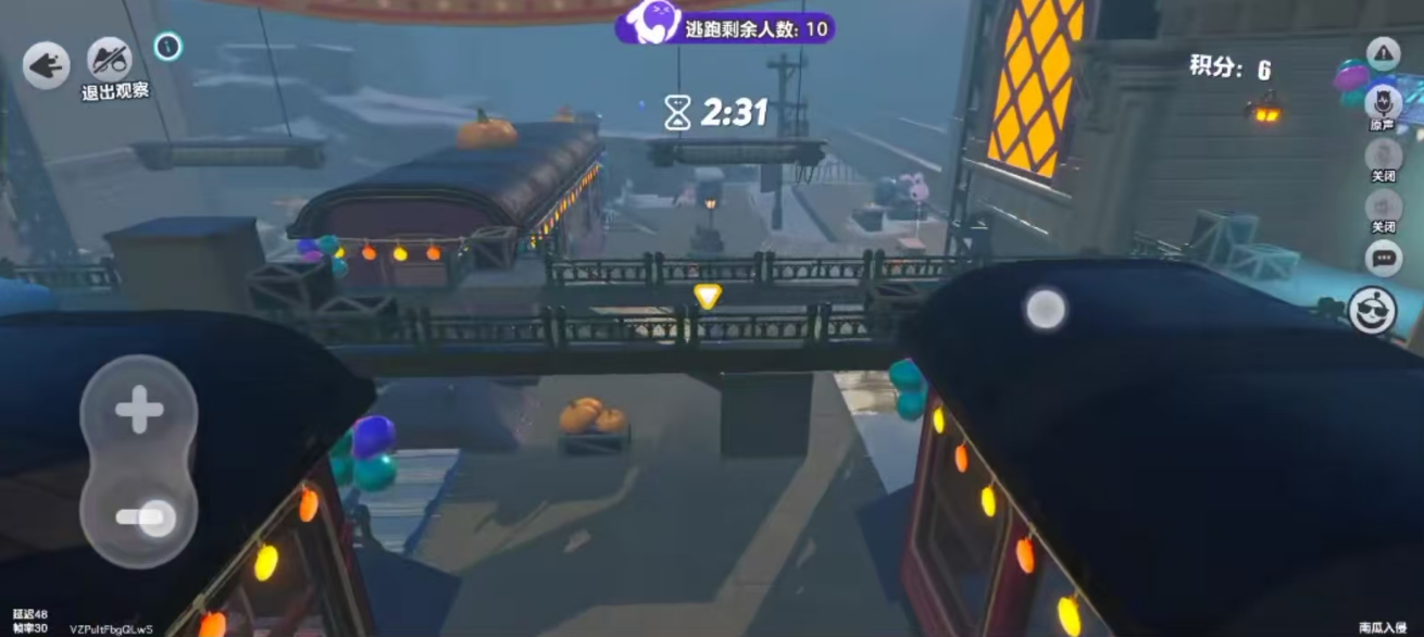 火车车尾的告示牌也可以去躲藏,操作是很简单的,只要掌握好跳坡的技巧,那就可以轻松的上去。站在公示牌的上面,可以选择去躲避下面南瓜的搜索,而且还可以随时去观察周围的情况。在发现危险之后还可以迅速的跳下来,然后去转移阵地,对于那些喜欢躲藏的玩家而言,还是比较轻松的。不过需要注意的是,告示牌背后的墙是假的,所以千万不要贸然的去尝试。餐厅的边上有一个大灯的点位,这就比较合适去隐藏。跳上餐桌之后,然后点击一下跳跃键就可以跳到小型的木板上。