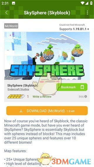 2、随便点击一个主页的地图模组或是找一个自己喜欢的模组,主页就是地图模组,点击就会跳转至新界面;在此界面寻找到DOWNLOAD,点击即可下载;
