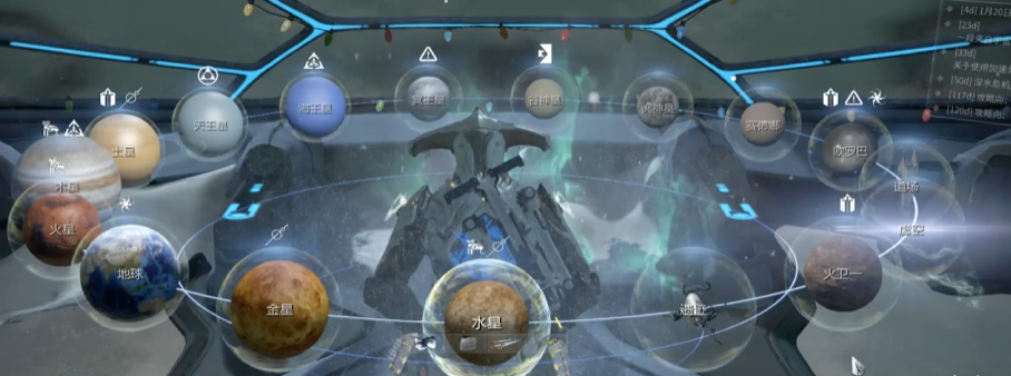 在点开这个终端界面之后,我们会看见游许多的星球供我们选择,这些就是我们要选择进入的地图。一般来说,在PC端只需要G键即可标记我们想要的飞船,但手机端我们需要“长按”中间我们选择的星球,会发现有一个小圈在转,等圈转完,我们就可以标记我们想要的地图了。