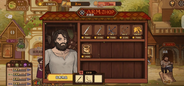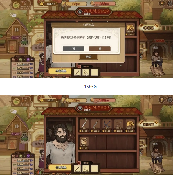 在加满甜言蜜语天赋之后,夏火年来到铁匠这里,可以看到我们的化肥价格是140G,这个时候我们只需要等商店打折就OK啦~