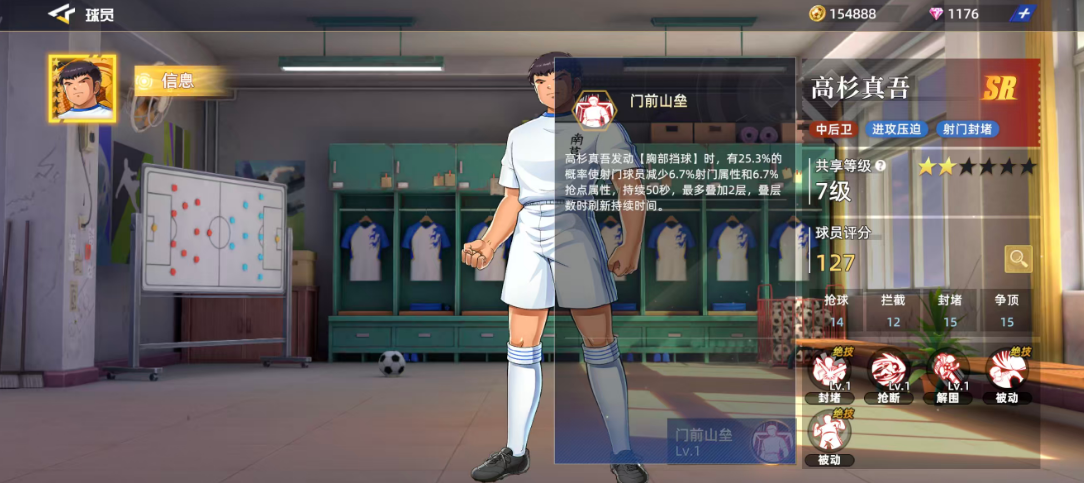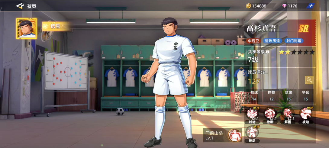 高杉真吾作为前期用的比较多的一个SR球员,放在中后卫才比较好用,如果用高杉真吾来作为进攻的主要核心,其实他带来的压迫力也是很大的,利用自身的射门动作加上封堵优势,可以带来的位置效果也能够配得上这样的品质设定,目前他在整体的球员评分当中获得了127的评分,球员现在的六维图当中他有一个很明显的短板,在抢球效果当中只有14的评分,其余抢球14、拦截12,封堵15、争顶15都是比较均衡的,也都是后期在中后卫的位置上面可用的能力。