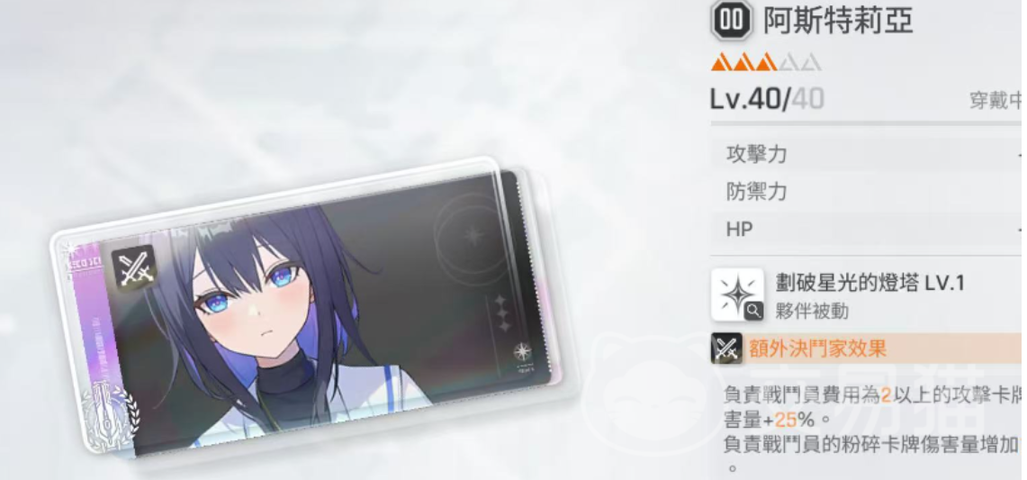 如果没有卡里沛的话,玩家也可以选择其他的先锋角色来代替,提高阵容的容错率。对于伙伴的选择上,首选专武阿斯特莉亚,因为她在费用达到二费以上的时候可以提升攻击卡25%的伤害,对小春的输出很有帮助。其次选择托奇卡,作为门槛较低的伙伴,可以提供稳定士气加成和增伤效果。武器上推荐使用红剑,该武器可以提高输出效率,让小春的攻击更加致命。