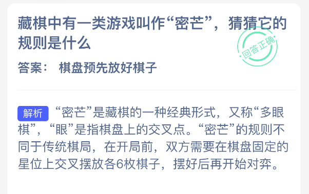 以上就是藏棋中有一类游戏叫作“密芒”,猜猜它的规则是什么?支付宝蚂蚁新村最新答案2025年11月28日,更多精彩内容,请点击关注0405手游网更新!