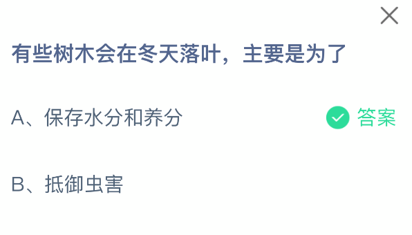 以上就是有些树木会在冬天落叶,主要是为了,支付宝蚂蚁庄园2025年12月4日答案最新,更多精彩内容,请点击关注0405手游网更新!