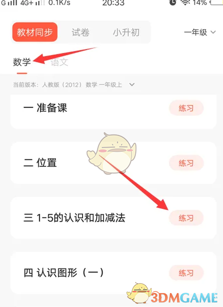 2、进入后选择科目,找到习题内容,点击练习。