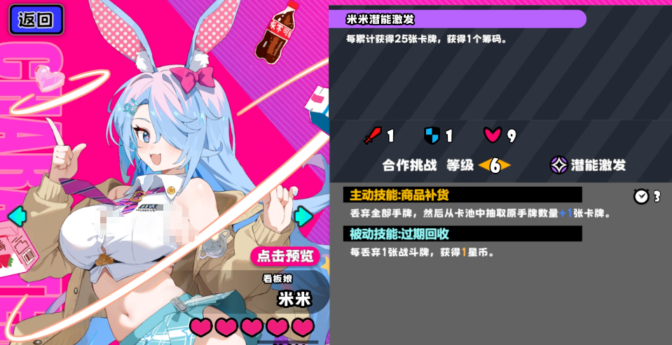 米米:核心机制为“高费优先使用+低费洗入牌库”,其强度随星级提升显著。推荐搭配银行卡(强化标记触发)、八面骰(稳定费用调度)、电池(续航补充)三件套,形成高效循环体系。