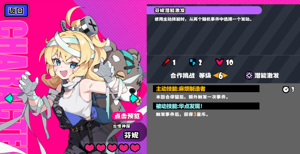 芬妮:激发后拥有开局强制选择事件并立即发放三星币的特性,是当前版本最快达成首回合经济爆发的角色。核心构建方向为经济向,同时可兼容治愈词条以增强容错率,属高性价比辅助人选。