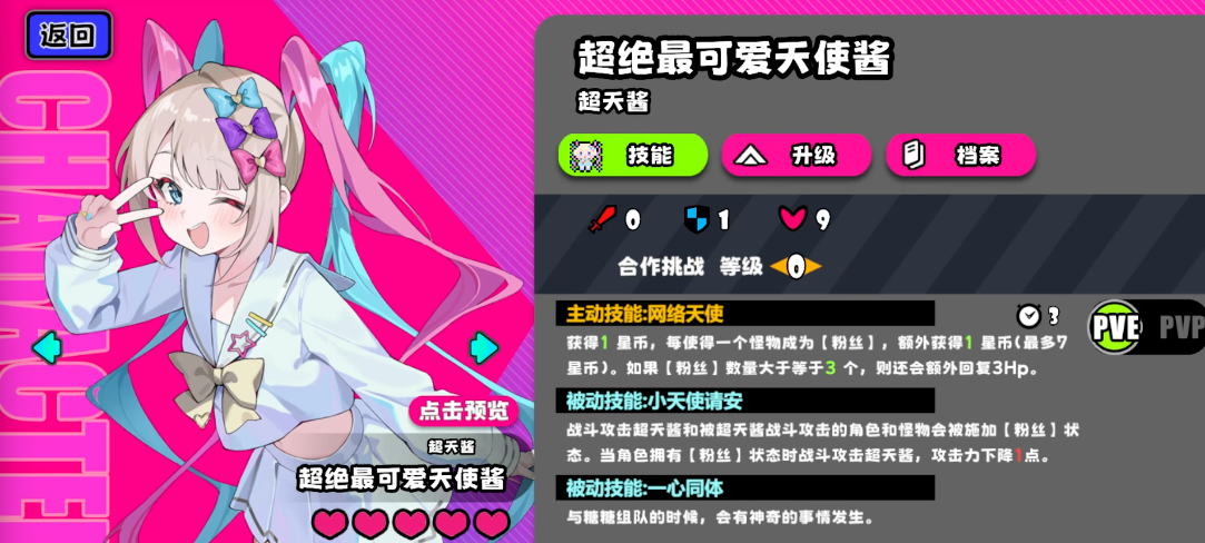 超绝最可爱的天使酱:与糖糖共享被动机制,形成双向增益闭环——超天酱承伤为糖糖叠被动,糖糖输出为超天酱积攒粉丝,粉丝攻击糖糖时同步享受超天酱减攻效果。二者协同作战强度可达独立作战的170%。筹码配置参照侦探系角色模板。